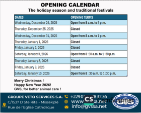 GROUPE VETO SERVICES S.A. (GVS S.A.), entreprise spécialisée dans l’approvisionnement, le stockage et la distribution de produits de santé animale, s’est donnée pour mission de mettre à la disposition des cabinets vétérinaires et autres structures autorisées, des produits de qualité, accessibles et sûrs.